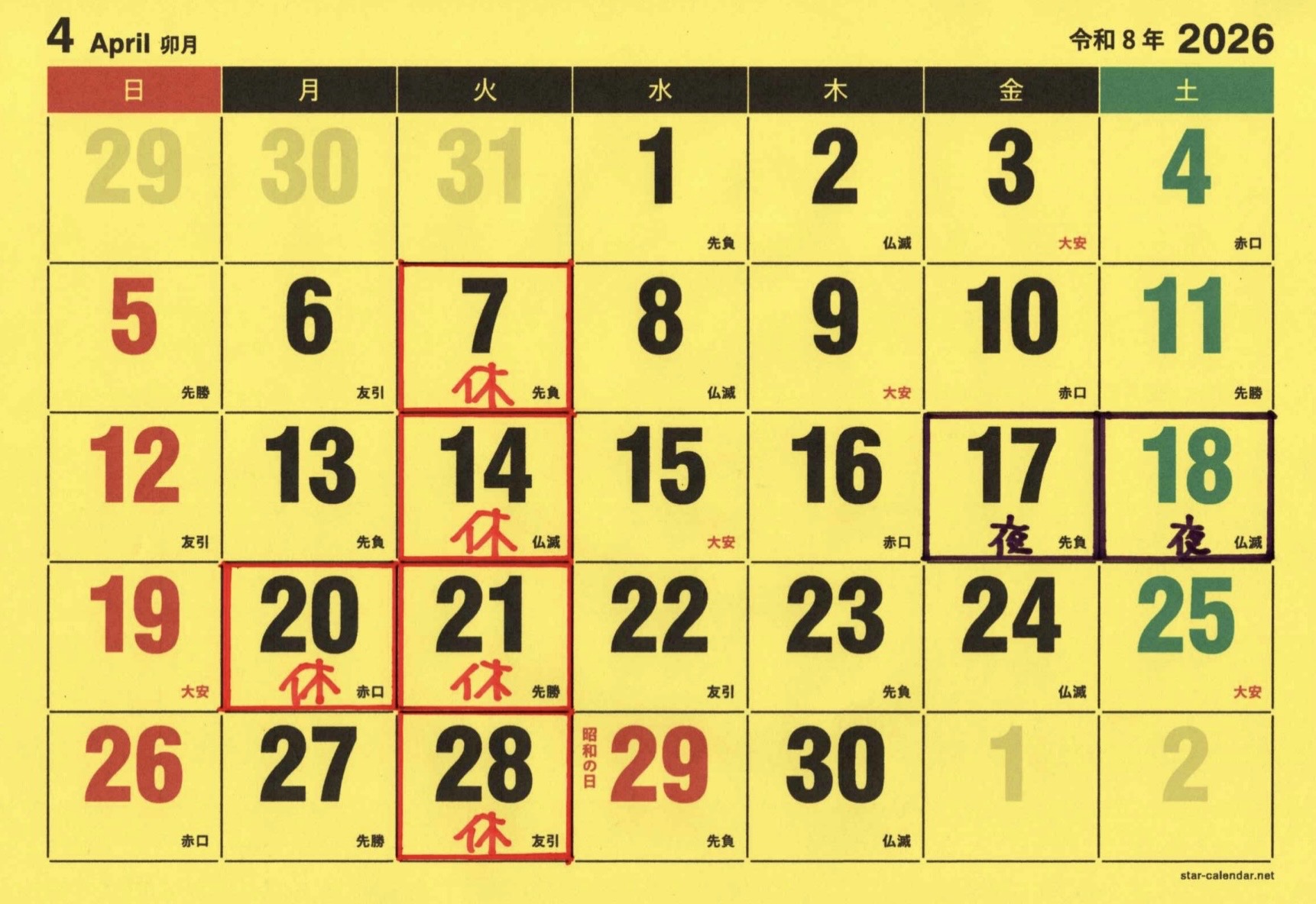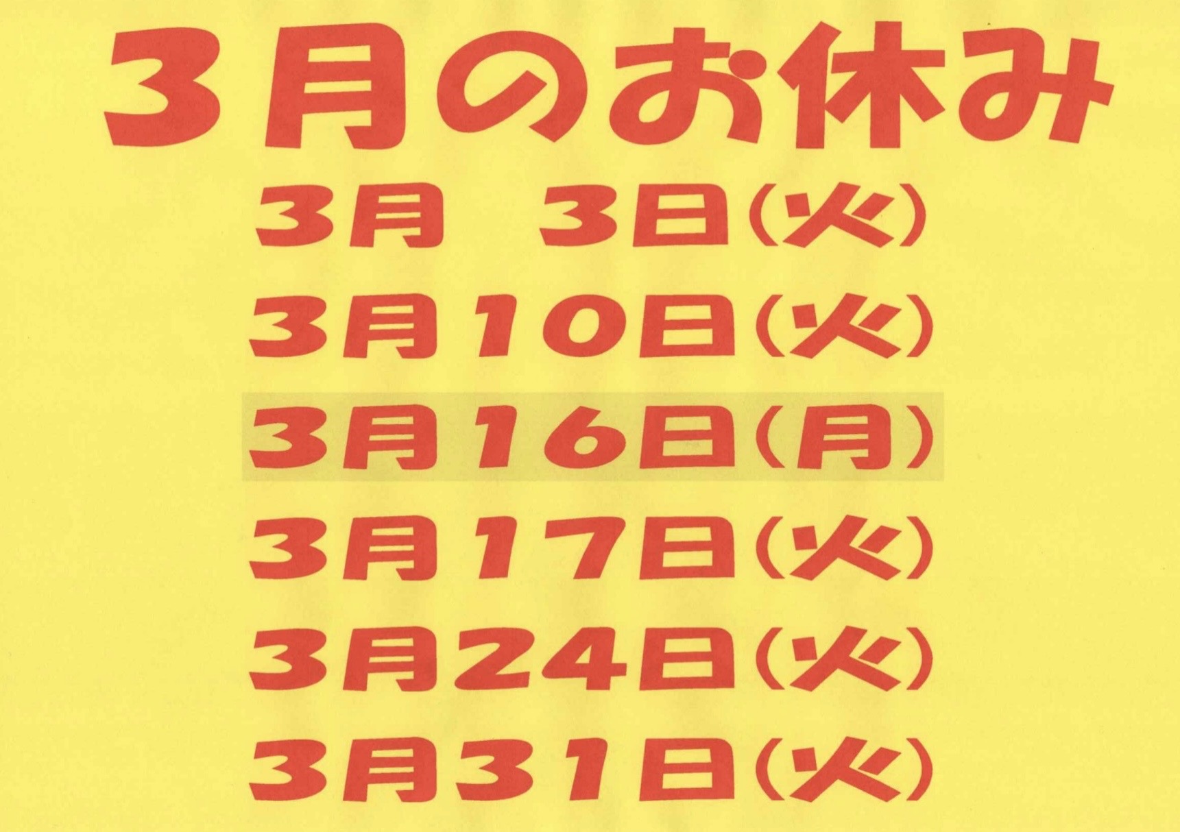 今月のお休み