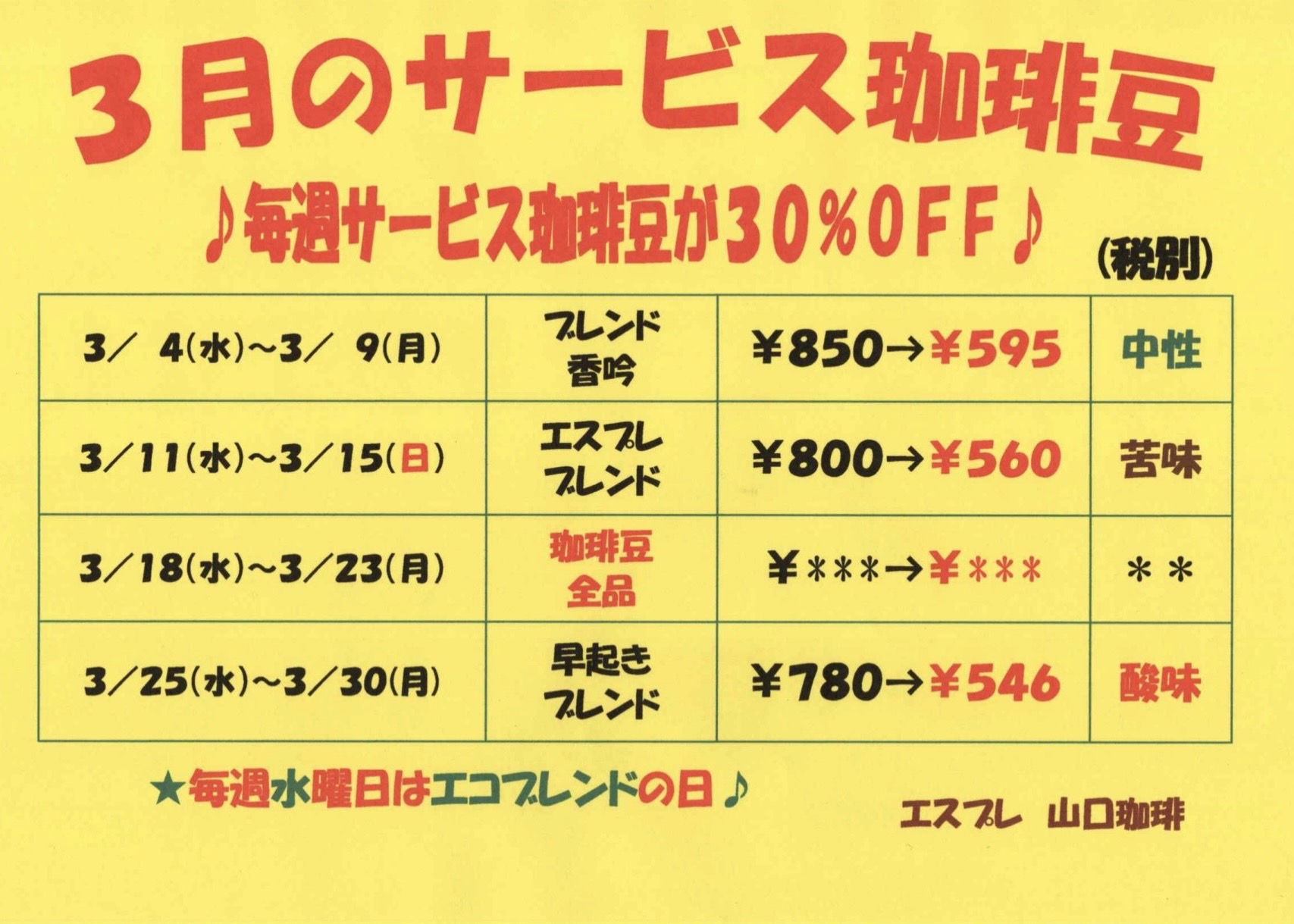 ♪今月のサービス珈琲♪