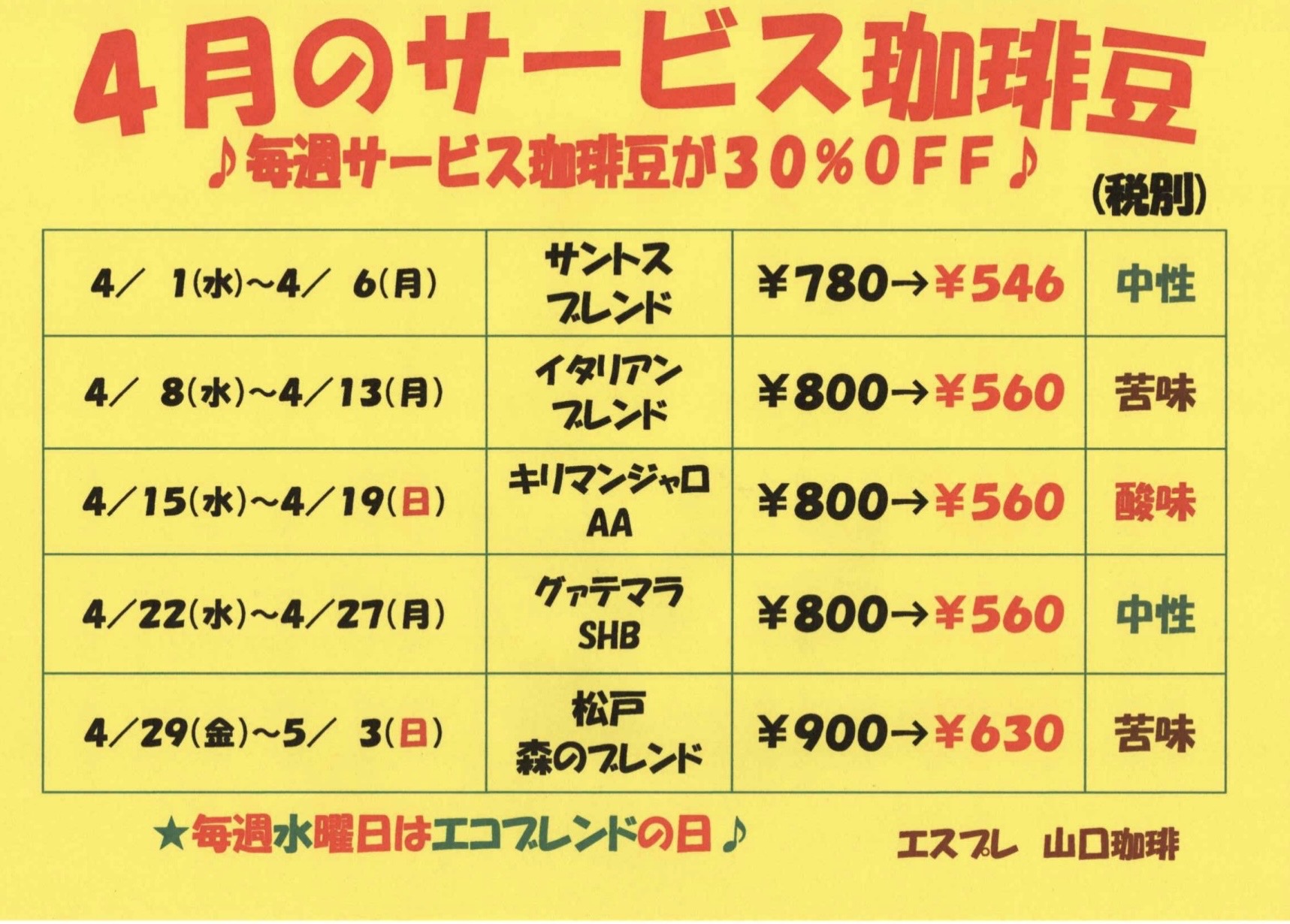 おすすめは、毎週水曜日限定のエコブレンド。